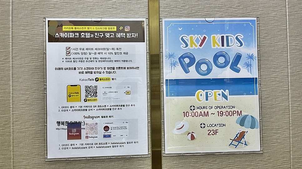 엘레베이터를 타는데 23층에 스카이 키즈풀 발견