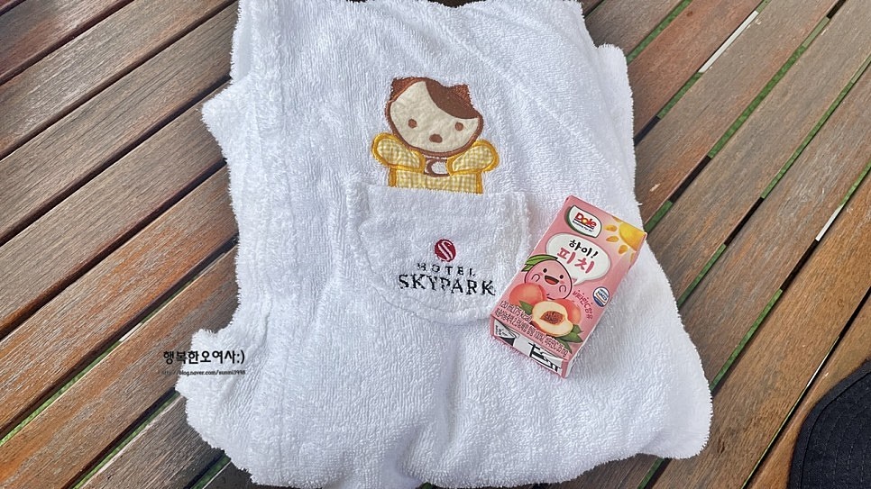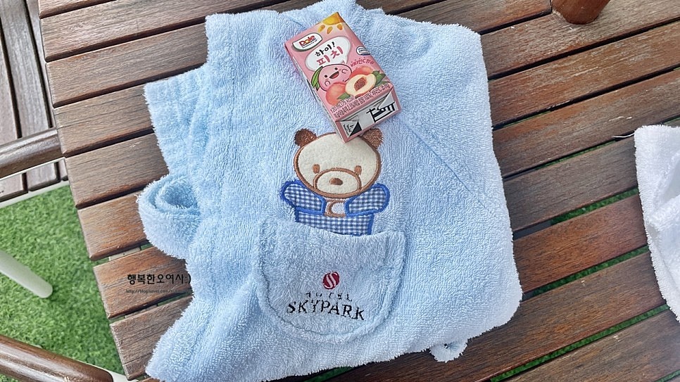 예약한 아이들에게는 수영가운 , 달콤한 음료수 제공